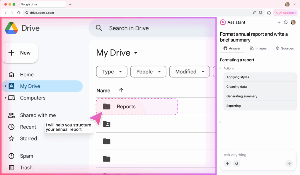 - System-level control: Operates desktop apps and manages local files, enabling a truly unified workflow across browser and OS-level tasks.