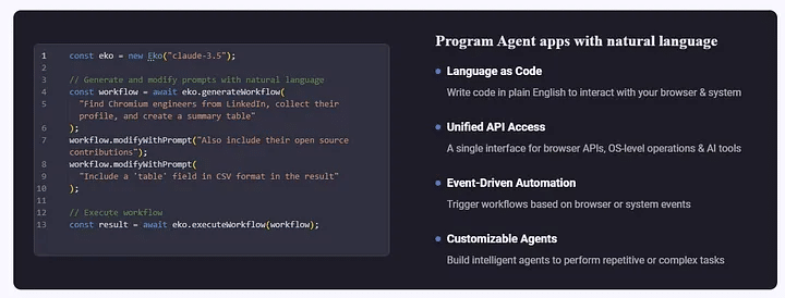 - Workflow automation: Automates complex sequences like sending emails, submitting forms, closing tickets, or posting content across platforms.