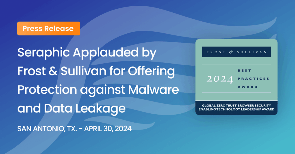 SAN ANTONIO, TX. – April 30, 2024 – Recently Frost & Sullivan assessed the zero trust browser security (ZTBS) market, and based on its findings, recognizes Seraphic Security with the 2024 Enabling Technology Leadership Award. The company leverages zero trust policies at the authentication layer in its browser agnostic ZTBS solution to provide data loss prevention (DLP), governance, security, and connectivity to turn any browser into a centrally secured and managed enterprise browser. The enterprise solution delivers robust security and governance to all browsers while preserving the native experience for the end users. Seraphic Security also offers zero trust private access (ZTPA) capabilities for internally hosted applications with its cloud and smart connector to address security risks from BYOD (bring your own device) use cases and improve user experience.